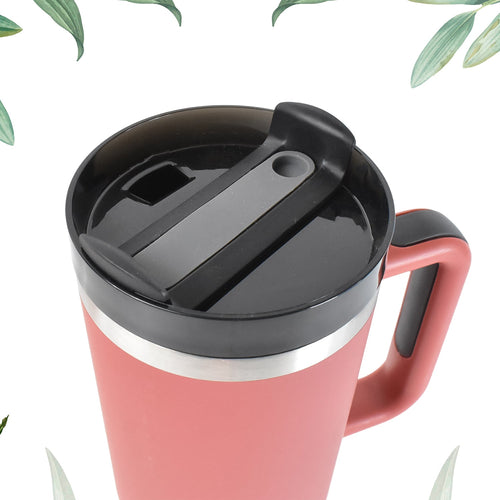Stainless Steel Vacuum Insulated Tumbler With Lid, Handle, And Straw For Water, Coffee Mug, Iced Tea, Keeps Drinks Cold For 24 Hours Or Hot, Car cupholder, (Approx 1200 Ml)