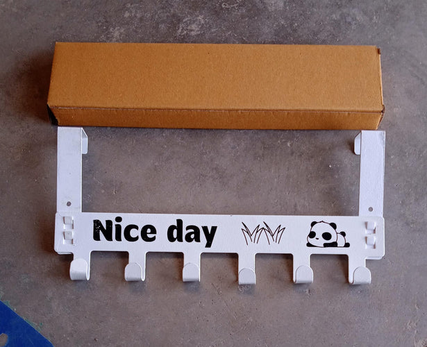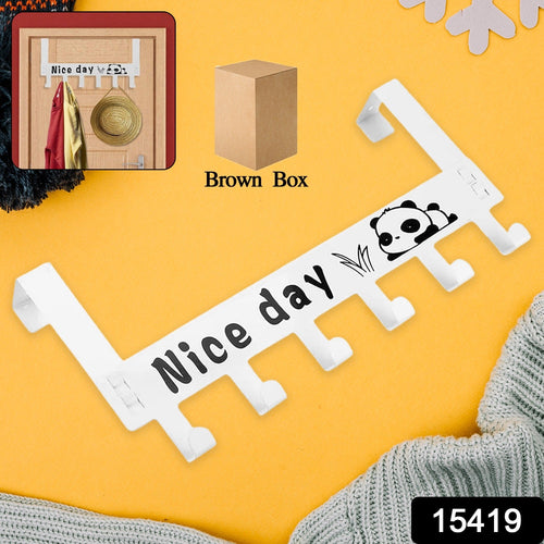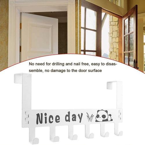 Heavy-Duty Carbon Steel Cartoon Nice Day Over Door Hook Hanger Rack, Towel Hanger, Removable Door Hook, Coat, Scarf, Cloths Hanger (1 pc / 6 Hook / White Color)